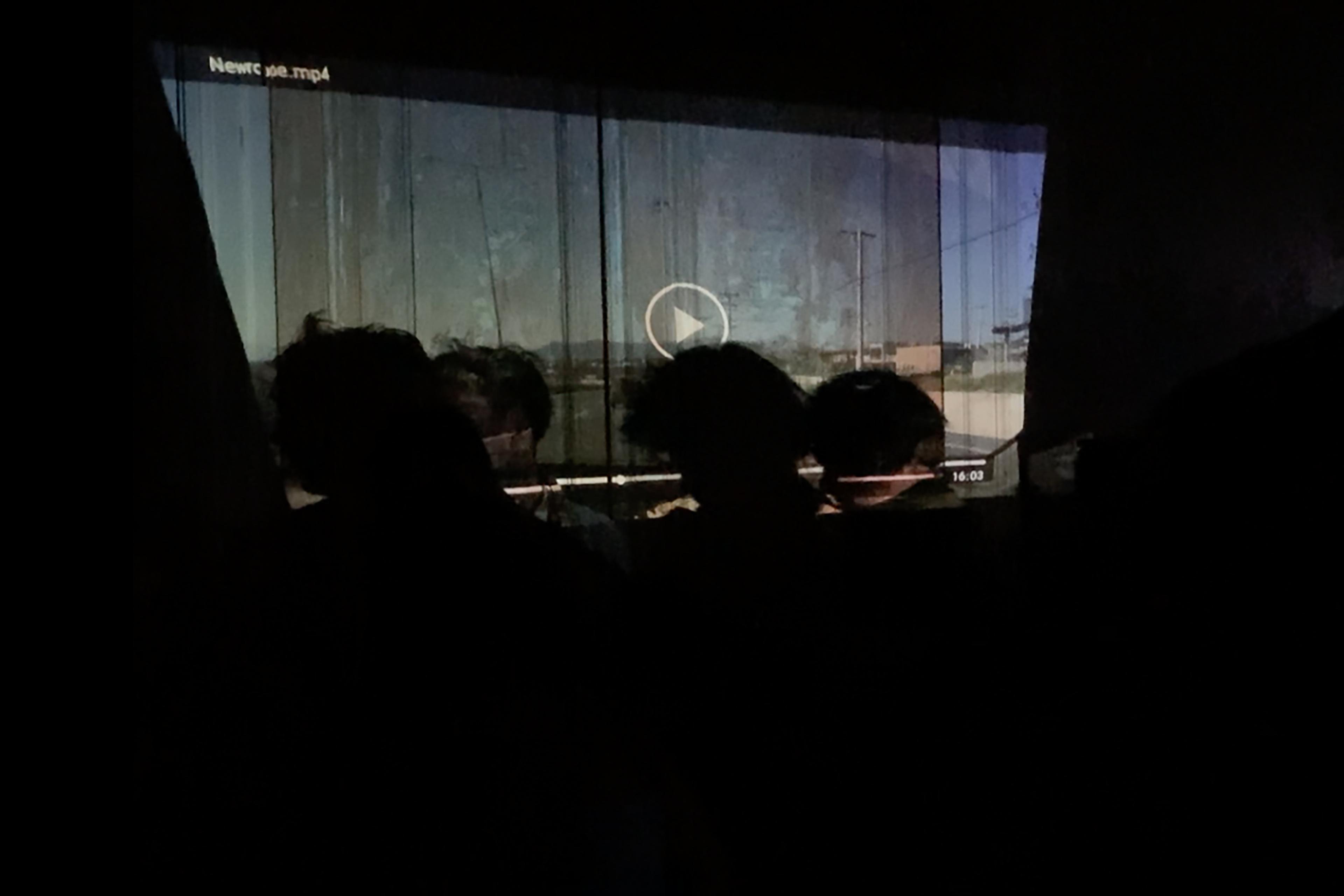 The format of documentation of the seminar week were individual mobile phone video diaries of 1 minutes per day to reflect on Newrope in Athens. Each student produced 5 videos of 60 seconds each during the course of the week. For the final performance we collectively produced a 15 minute. Each one of them showed the one for him or her most meaningful minute. For this, they chose the setting within Communitism themselves and one after the other handed over a portable projector. By choosing different rooms, sizes and positions, the screening became a very divers spatial experience including the whole building.